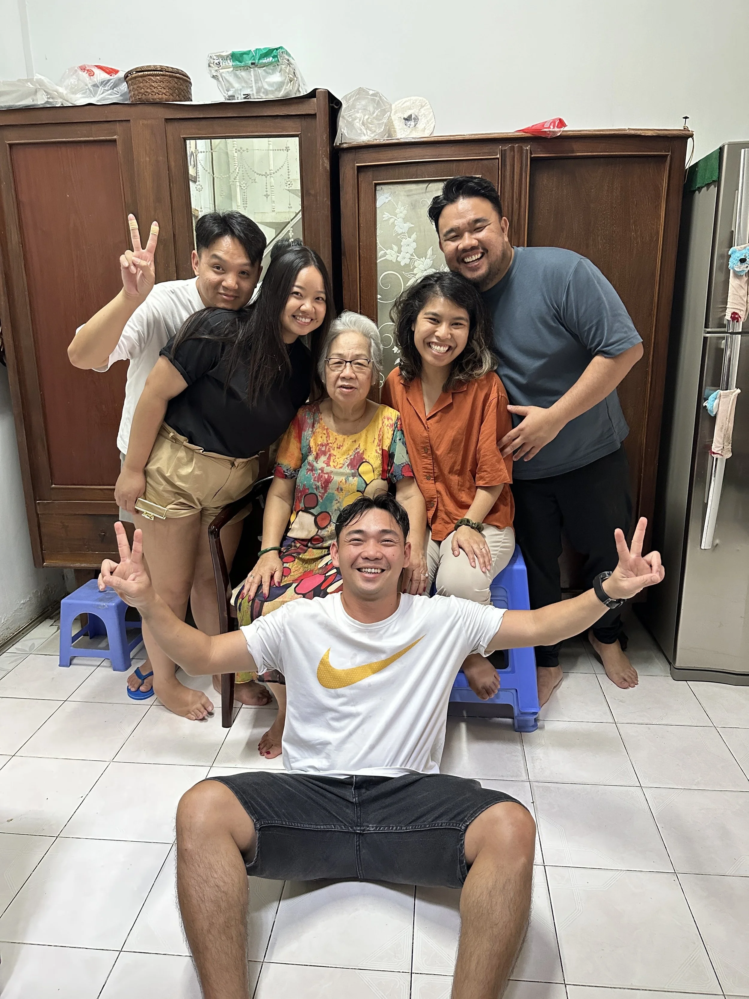 With the help of Tam’s cousins, we set up the house for probably 40 people. When everyone started to arrive, the family set out the offerings… We prayed downstairs, prayed upstairs, and waited for everyone to finish. When Tam’s grandma’s sisters arrived, they prayed too and we could started eating. I don’t remember what we ate, but I remember everyone having a ton of fun.